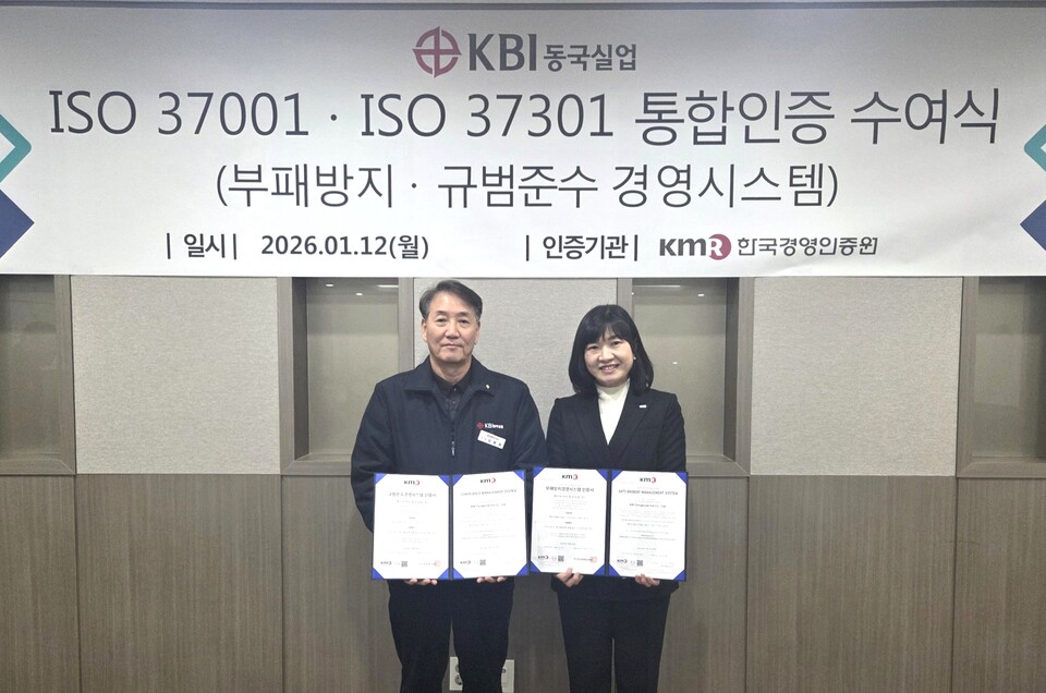 KBI동국실업은 최근 한국경영인증원으로부터 부패방지경영시스템(ISO 37001)과 규범준수경영시스템(ISO 37301)에 대한 통합인증을 획득했다.
