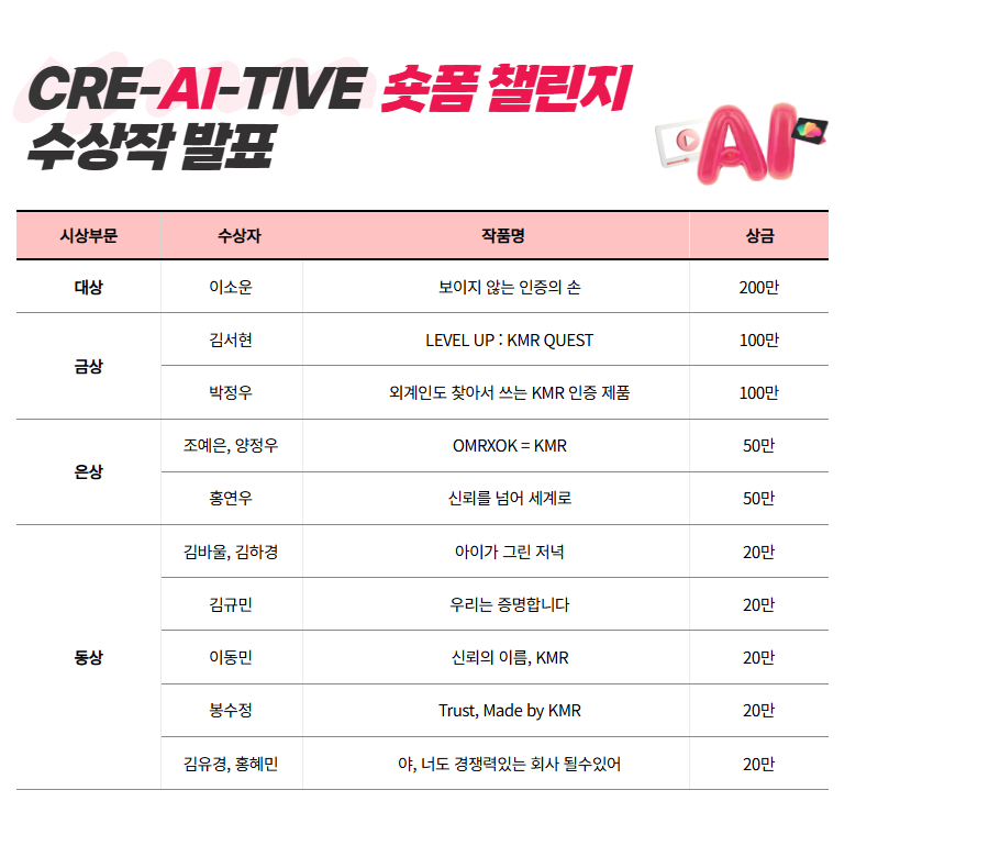 [공모전] 2025 KMR 공모전 AI로 만드는 ‘Cre-AI-tive 숏폼 챌린지’ 수상자 발표