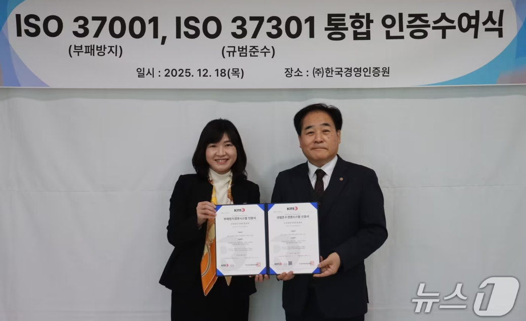 한국경영인증원으로부터 ISO 37001·37301 통합인증 취득