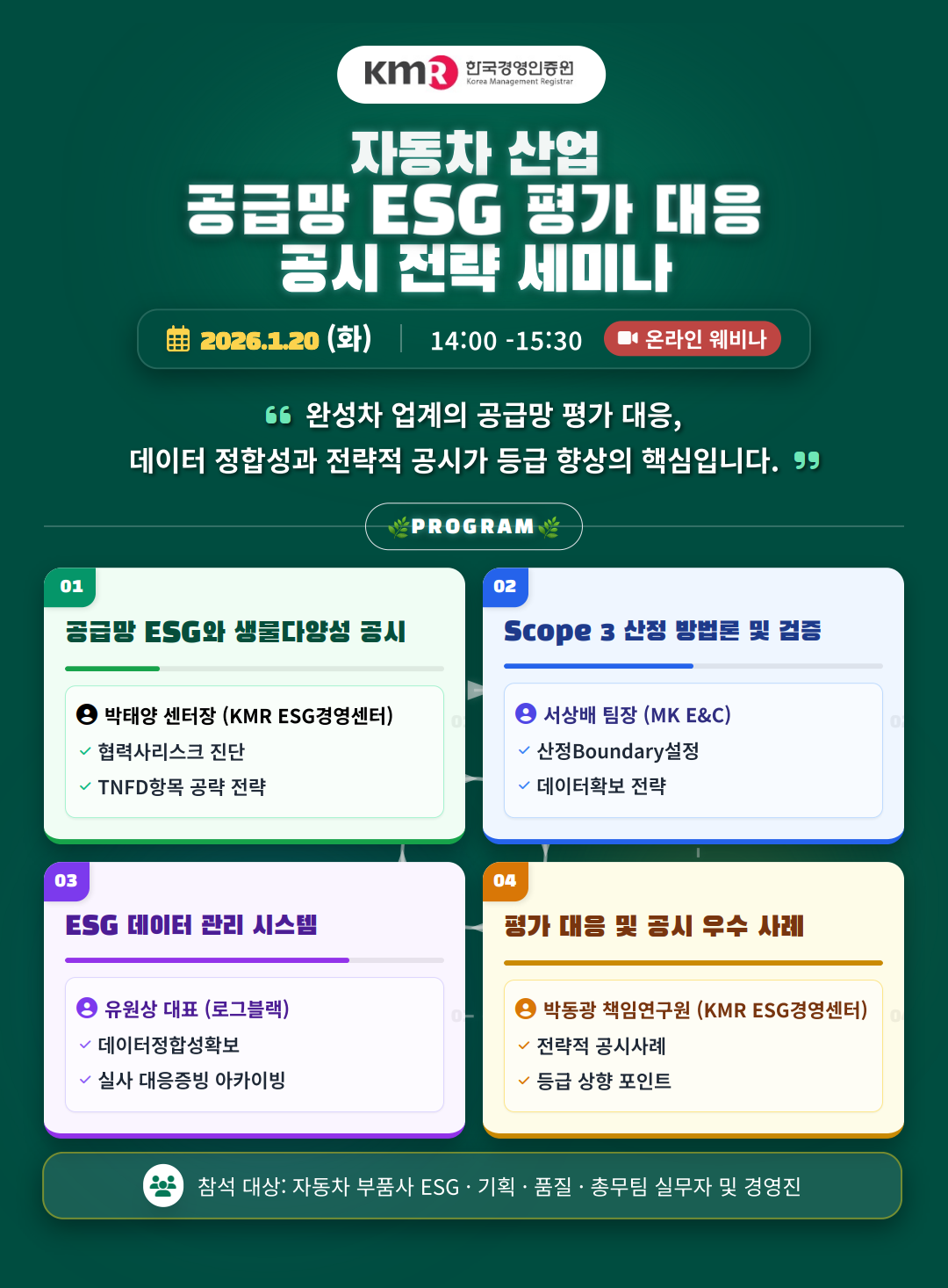 [온라인/진행중] 2026 자동차 산업 글로벌 공급망 ESG 평가 대응 공시 전략 세미나(1/20,화)