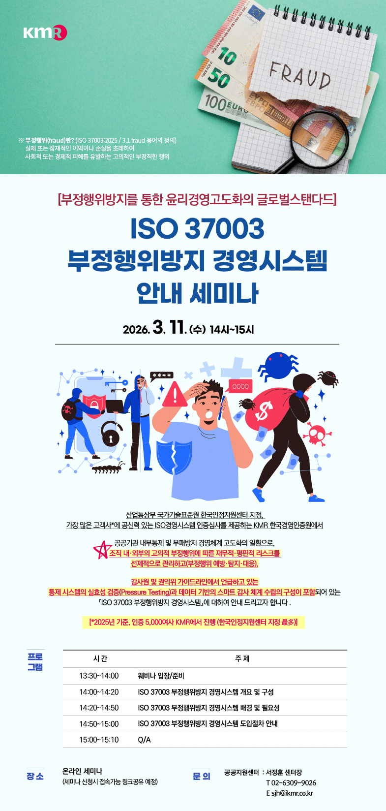 ISO 37003 부정행위방지 경영시스템을 주제로 온라인 안내 세미나를 개최합니다.