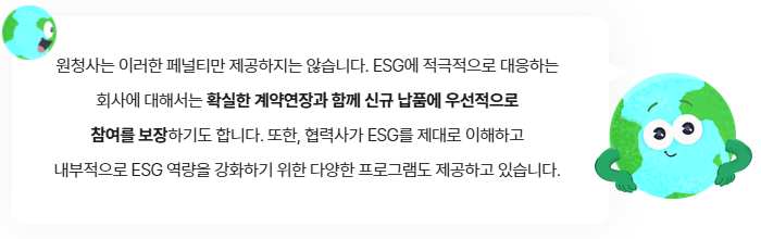 협력사가 ESG 평가에 가장 협조적으로 대응할 수 있게 만드는 수단은 협력사 계약조건에 ESG 요소를 반영하는 것입니다.
