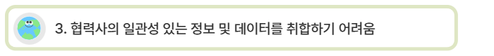마지막으로, 협력사의 일관성 있는 정보 및 데이터를 취합하기 어려운 점을 얘기할 수 있습니다.